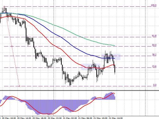 3) If the Fibonacci levels coincide with the moving average EMA, then rolled back and the formation of topping the candles on sale — conclude a deal to sell a pre-set limit orders to critical levels coincide with moving averages.