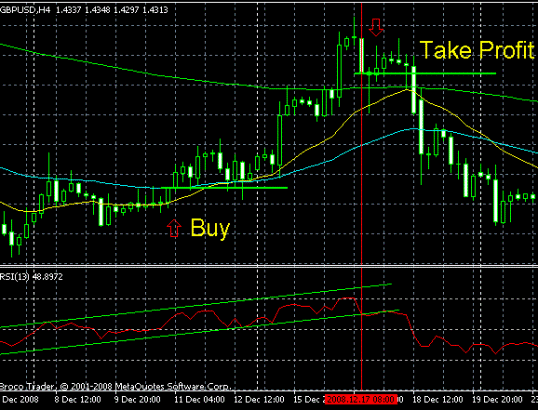 - Forex Indicator RSI (13) — indicates the presence of divergences in the market, as well as to determine oversold and overbought, as well as areas for transactions on the sale or purchase price and the breakdown channels.