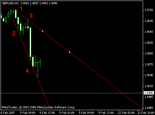 Then you can put on a rollback. Note for himself the fourth point, and spend another trend line.